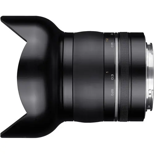 A super wide-angle prime, the XP 14mm f/2.4 from Samyang is an EF-mount prime that pairs an intuitive manual focus design with a sophisticated optical design. Incorporating 18 elements in 14 groups, this lens utilizes a series of aspherical, low dispersion, and high refractive index elements to reduce color fringing, aberrations, and distortions for sharp, clear, and color accurate imagery. An Ultra Multi-Coating is also featured, as well as a built-in lens hood, to suppress lens flare and ghosting for improved contrast when working in bright, direct lighting conditions. Complementing the imaging assets, a manual focus design is employed that permits working with subjects as close as 11" away, and the aluminum-alloy housing is both lightweight and durable to support working in a variety of conditions.
