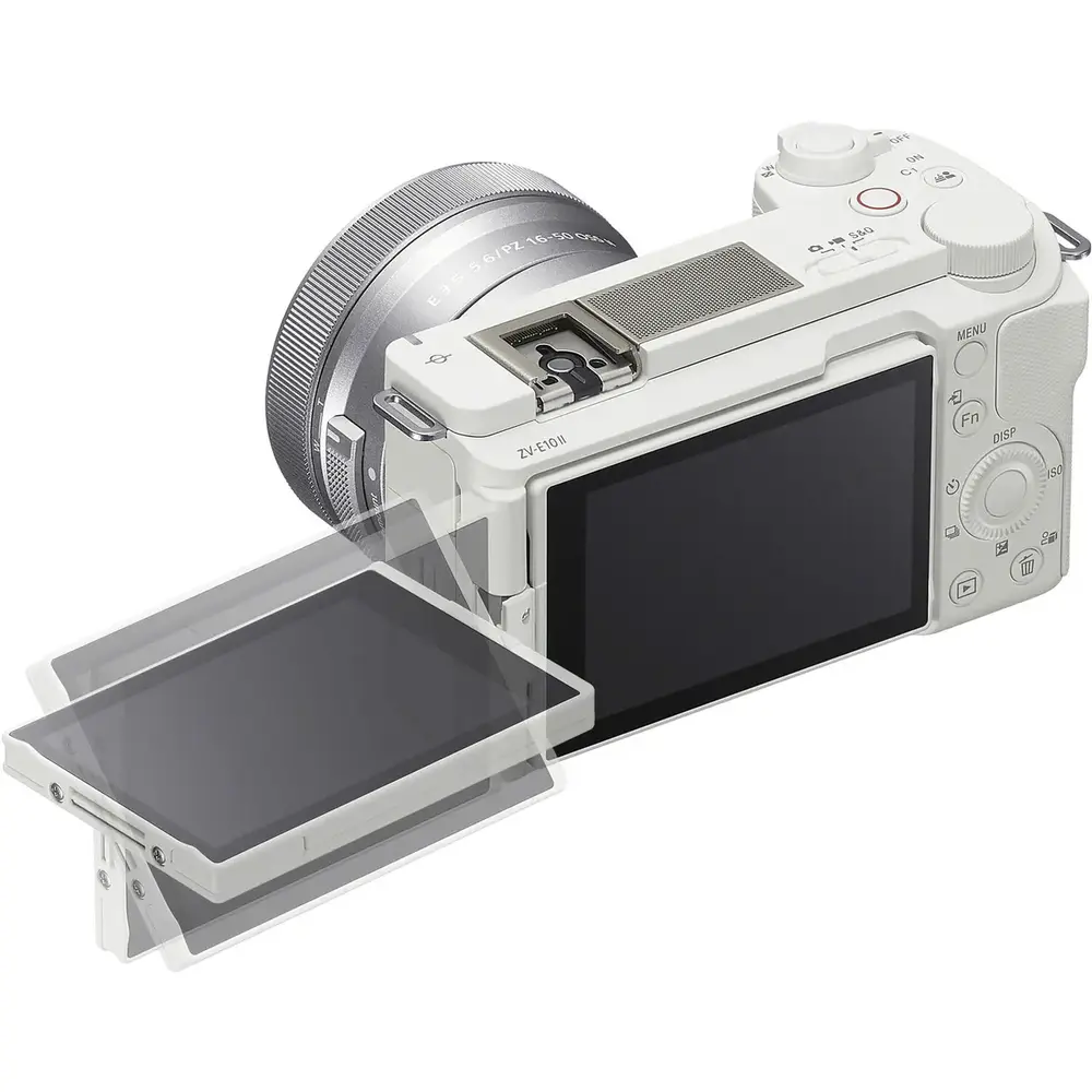 With improved features that expand upon its content-creation-focused predecessor, the Sony ZV-E10 II is outfitted with a 26MP APS-C sensor for faster performance and high-quality imagery in a compact form factor designed for vloggers. This aligns the ZV-E10 II with tried and true models such as the FX30 and the a6700. Built-in creative shooting modes, a 3-capsule directional microphone, and a 3" articulating LCD touchscreen with vertical orientation support and integrated tally light make for a powerful multi-purpose vlogging device. Other notable upgrades with the ZV-E10 II include a 759-point phase detection autofocus system, Cinematic Vlog mode, and compatibility with larger-capacity NP-FZ100 batteries.