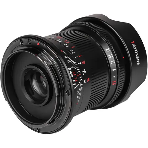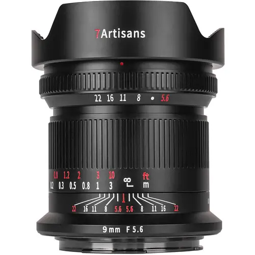 Offering a dynamic ultra-wide perspective, this full-frame 9mm f/5.6 Lens from 7artisans Photoelectric provides a uniquely wide angle of view for Canon RF-mount cameras that is well-suited for interior, architecture, nature, and landscape subjects. This updated model allows for a rear ND filter to be installed, enabling even more versatility when capturing images. The lens boasts an advanced optical design that uses extra-low dispersion, aspherical, and high refractive index elements to control a variety of aberrations and distortions to achieve high sharpness, clarity, and color accuracy. It has a manual focus design and permits working with subjects as close as 7.9" away, and a smoothly de-clicked aperture ring is especially useful for video purposes. The lens also includes a built-in hood to block stray light and prevent lens flare, and the optic is characterized by its compact and lightweight design, which makes it ideal for walk-around and travel applications.
