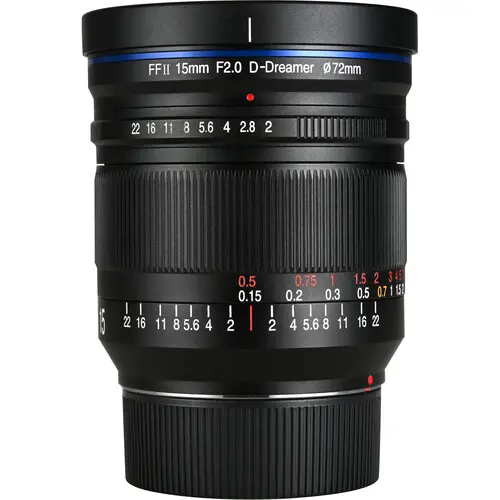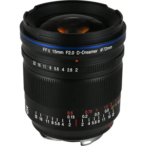 A fast and bright wide-angle prime, the Leica M-mount Laowa 15mm f/2 Zero-D Lens from Venus Optics is a rectilinear lens with a sophisticated optical design to effectively limit distortion. The bright f/2 maximum aperture makes this lens especially useful for astrophotography and low-light use, and when paired with the 5.7" minimum focusing distance, distinct shallow depth of field imagery can also be produced. The optical construction includes three extra-low dispersion elements and two aspherical elements to control both chromatic and spherical aberrations for greater sharpness, clarity, and reduced color fringing. A Frog Eye Coating has been applied, too, to repel dust and moisture from the front element of the lens to benefit working in trying environmental conditions.