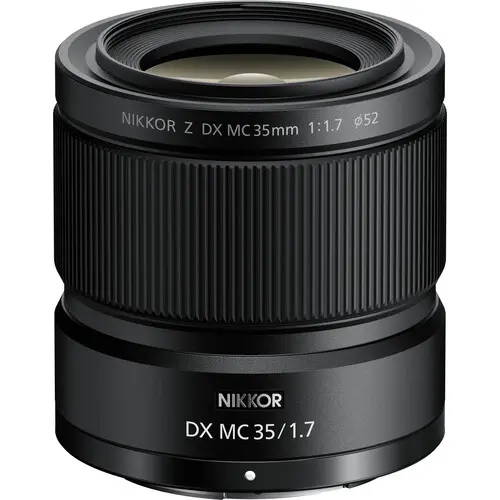 Balancing speed and portability, the NIKKOR Z DX MC 35mm f/1.7 Lens from Nikon is a standard prime designed for Z-mount cameras with APS-C sensors. Offering a 52.5mm full-frame equivalent field of view, it excels as an everyday lens for portrait, still-life, and street photography. The wide f/1.7 aperture provides control over depth of field and strong performance in low light, while its compact 2.8"-long build ensures convenient handling and integration with smaller DX-format bodies.